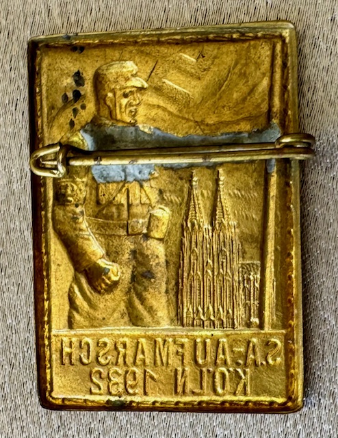 SA Aufmarsch Köln 1932 Tinnie, metal pinback, 28xx x 44mm, very rare