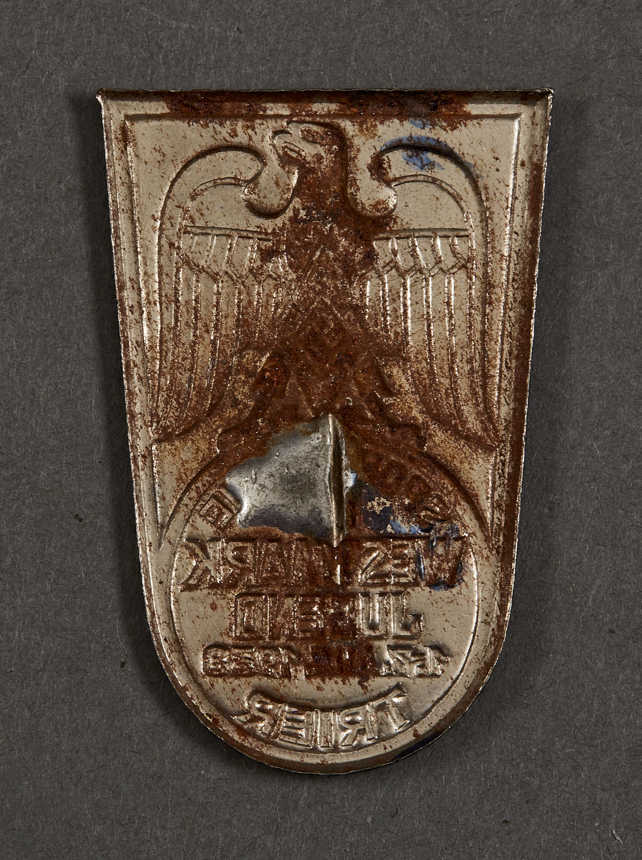 Sportwoche der Westmark Jugend 1.-7.Aug. 1938 Trier Tinnie, metal, no pin, 28mm X 44mm