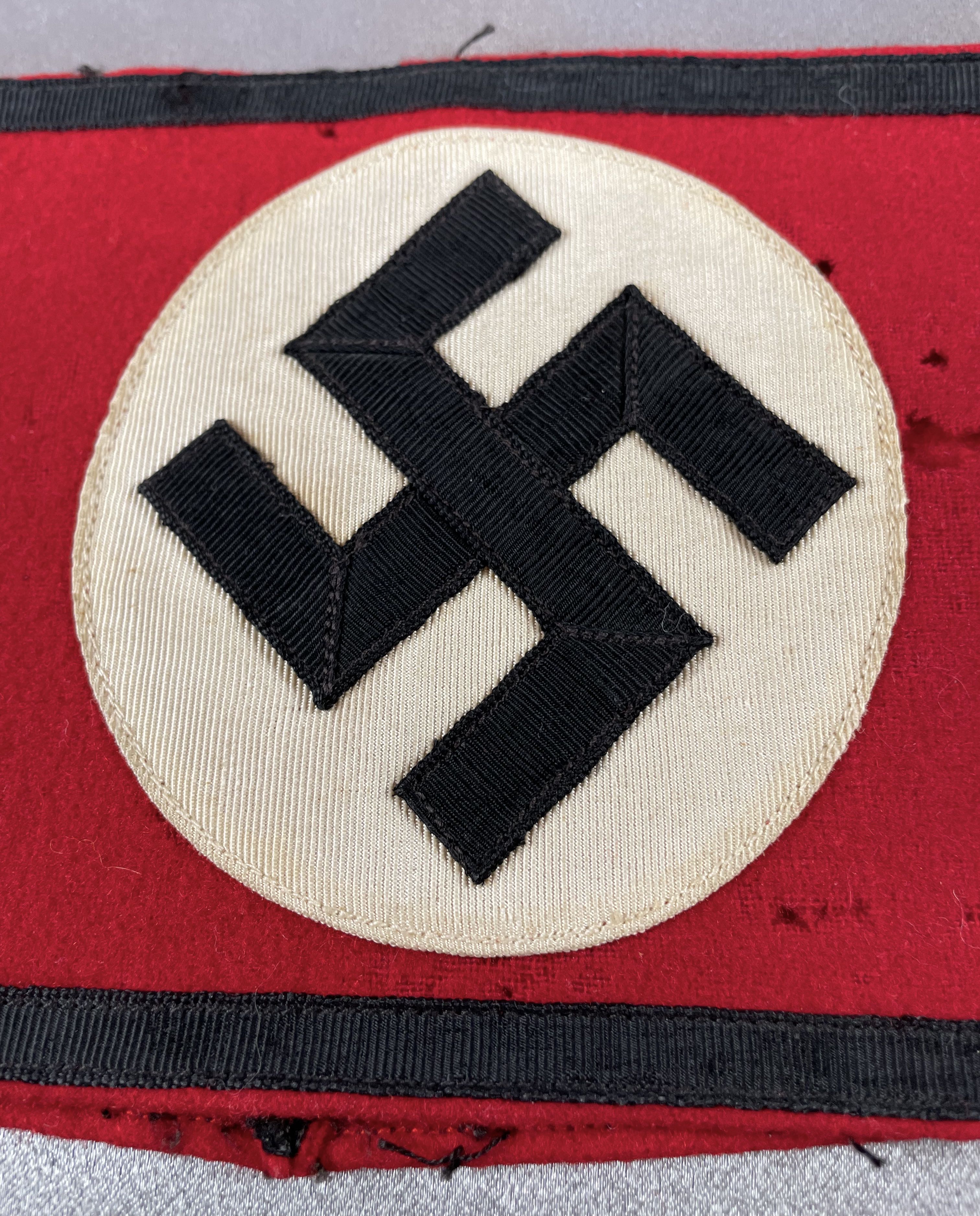 SS Armband, wool with ribbon swastika and cloth RZM tag inside, mothing as shown