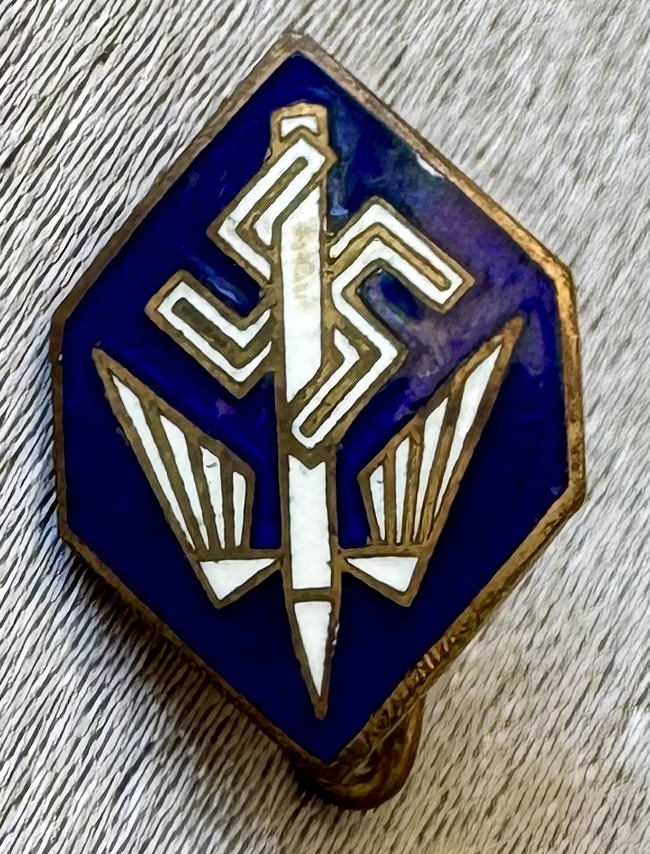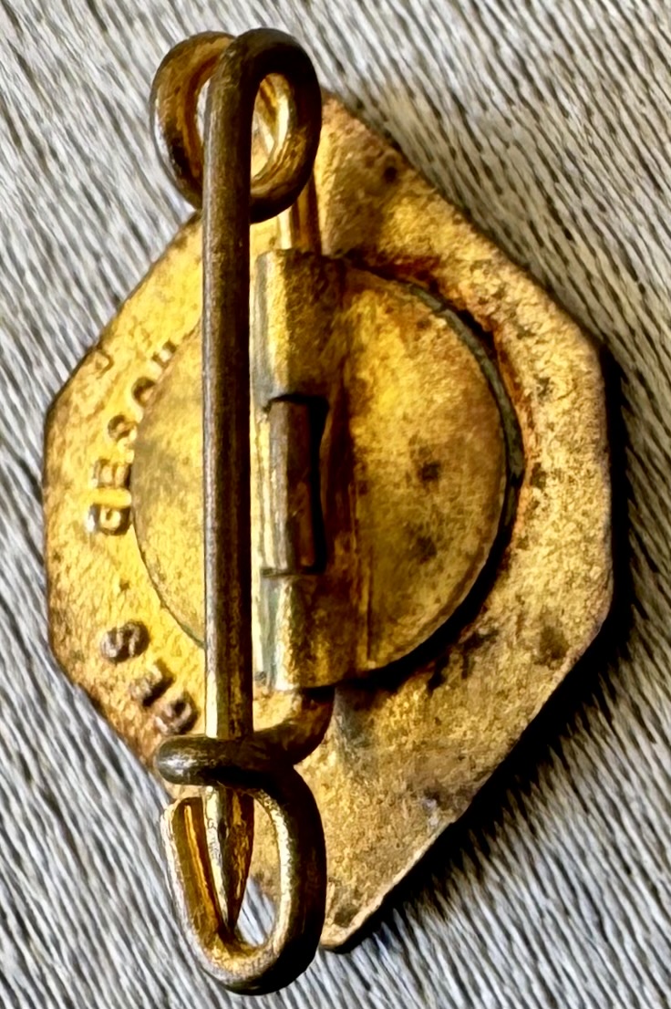 Stenographer’s Membership Badge, metal enamel pinback, marked "GES. GESCH.", 11MM X 15MM