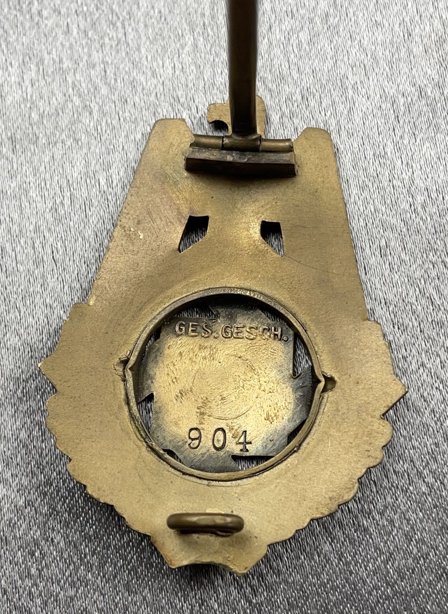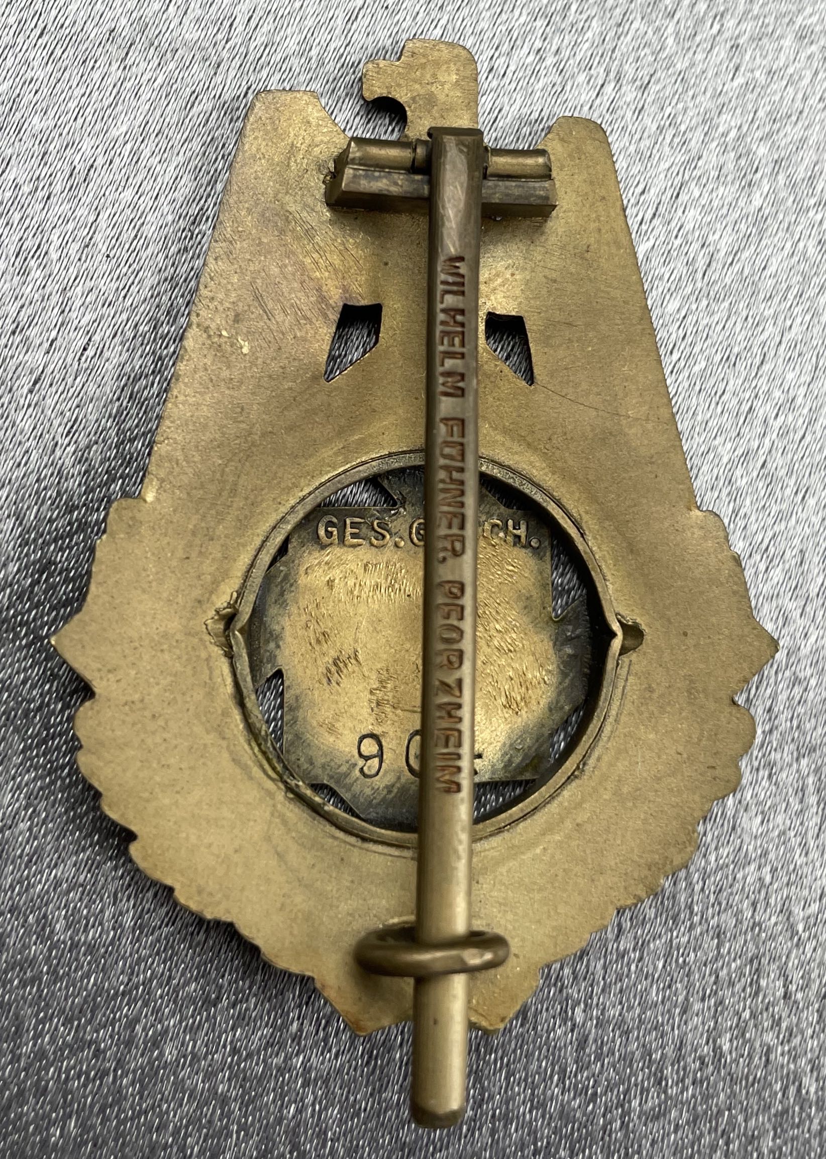 Technical Emergency Service Honor Badge, marked on reverse Ges.Gesch., numbered 904, pin marked WILHELM FUHNER PFORZHEIM. A real one !