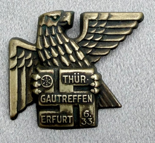 Thür. Gautreffen Erfurt Tinnie 4.6.33, metal pinback, 48mm X 41mm