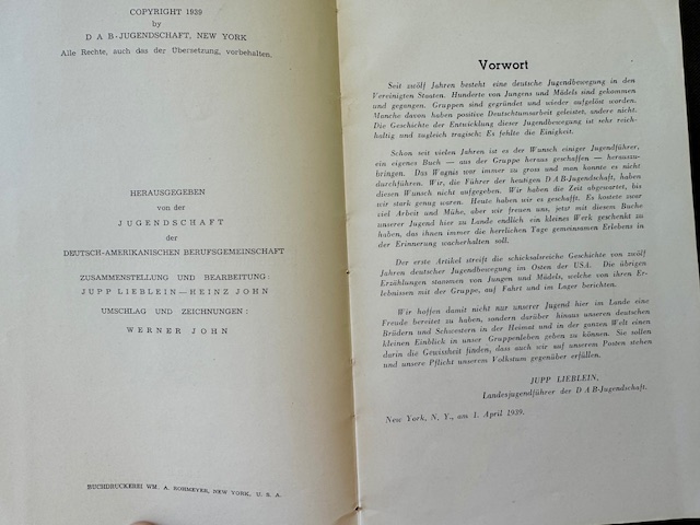 We Experiences of German youth in the USA, published in the US in 1939, 6 1/4" X 9 1/4", 48 pages, rare
