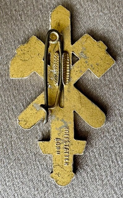 1925 1935 10 Year Gau Essen Tinnie, metal pinback, maker marked "Hoffstätter Bonn", 31mm x 53mm