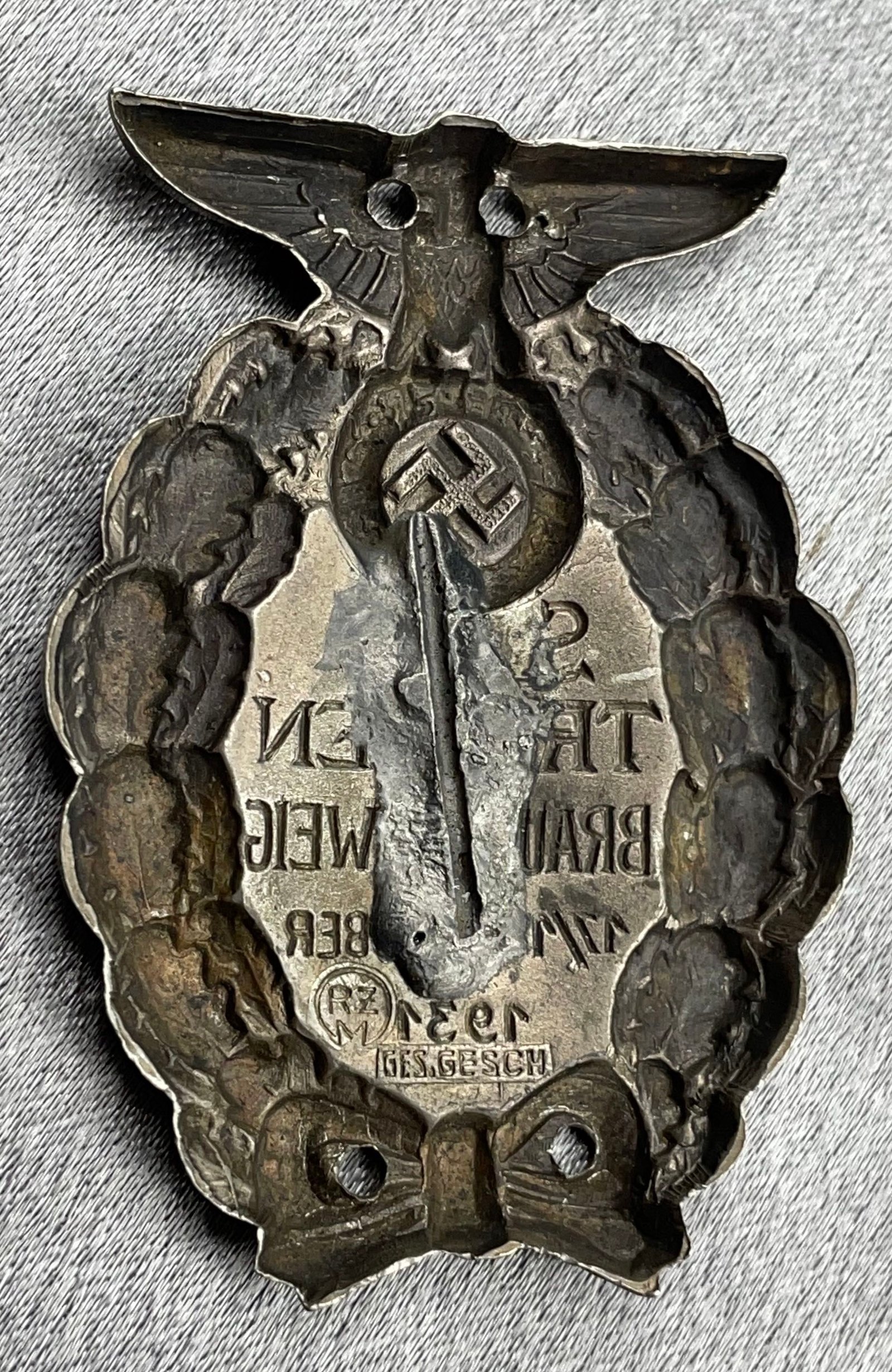 1931 SA-Treffen Braunschweig Badge, early ges gesch marked, no pin