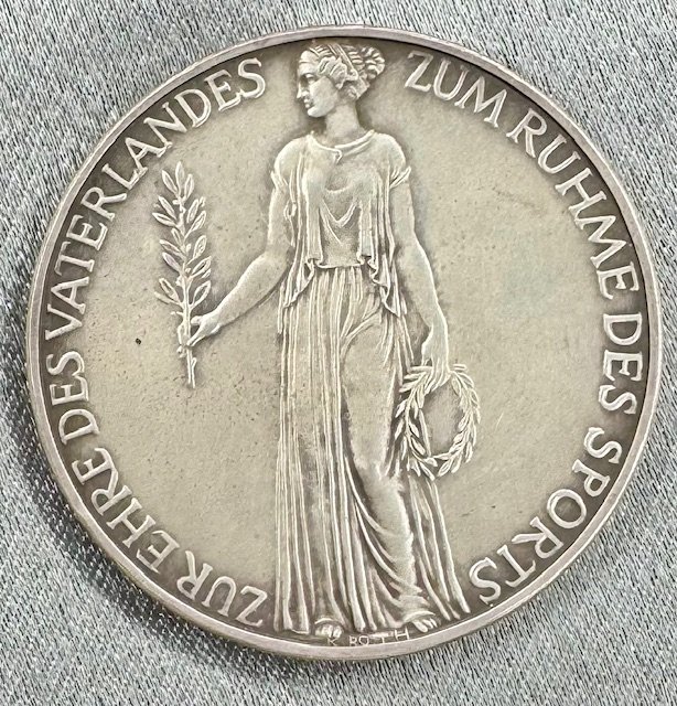 Zur Ehre Des Vaterlandes Zum Ruhme Des Sports / Olympisches Spiele Berlin MCMXXXVI. Marked on the edge, "BAYER. HAUPTMUNZAMT-FEINSILBER", 37 mm, Silver (.925)