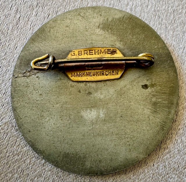 1936 Reichsparteitag Tinnie, metal pinback, maker marked "G. Brehmer Markneukirchen", 39MM