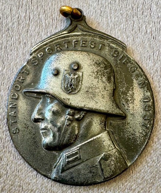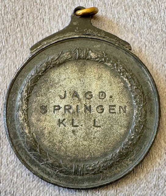 Hunting Award, front reads, "Standört Sportfest Siegen 1937", reverse reads, "Jagd. Springen KL. L", metal, 34mm