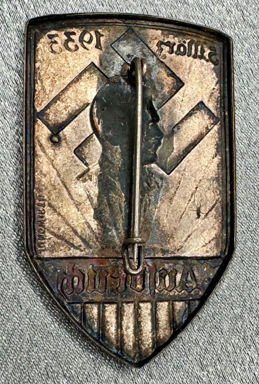 5. März 1933 Ausbruch Tinnie, marked Jungwirth on the one side, 28mm X 46mm, metal pinback, rare