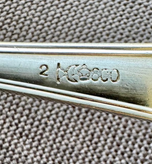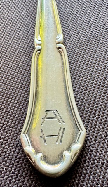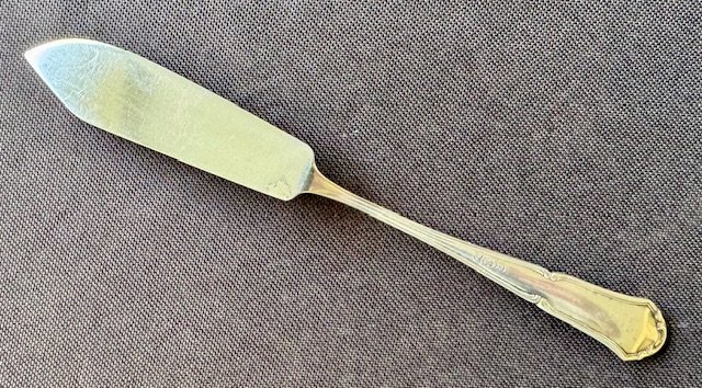 Adolf Hitler Butter Knife, runic symbols to front "AH", reverse is marked "2" and "800", 8 1/4" in length, previous owner bought this from Gettysburg.