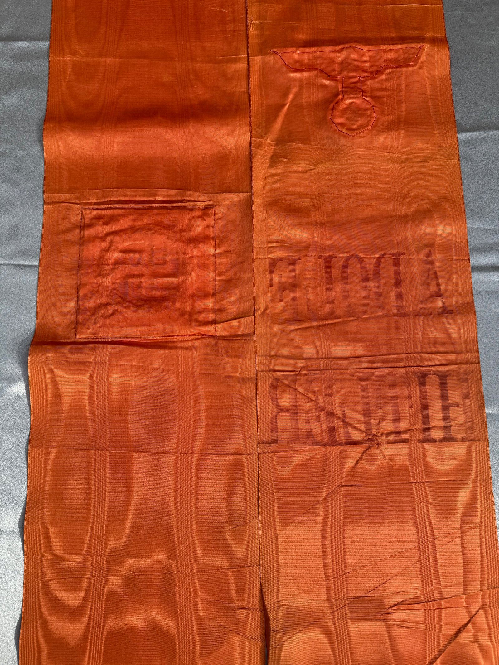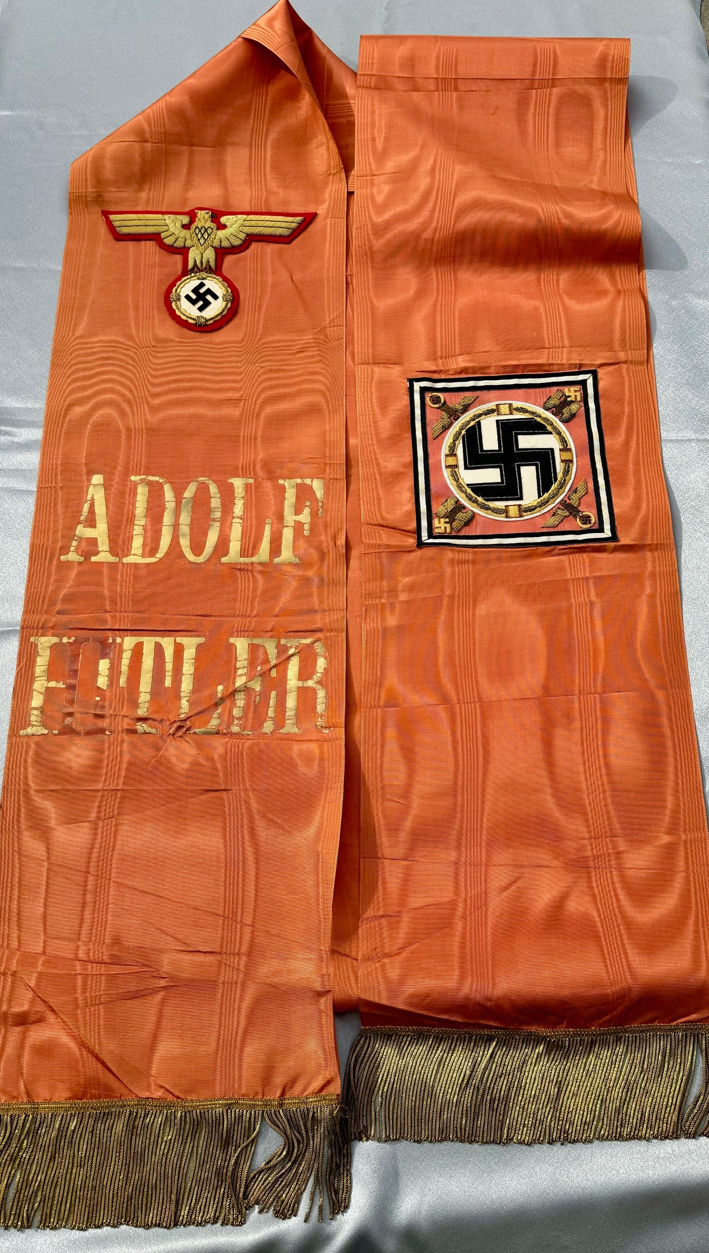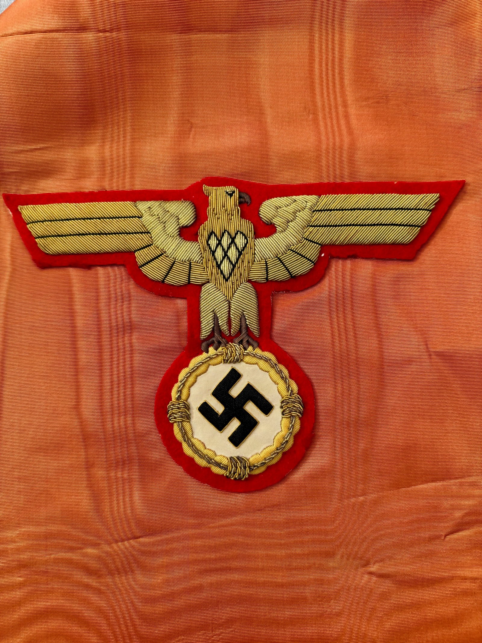 Very High quality "Adolf Hitler" style only used for high officials and dignitaries that Hitler personally knew. (The "Der Führer" style was used for all others.) About 10.5 inches wide and 16 feet in length. No snags, tears, or stains. One of the nicest I have owned, Excellent condition!