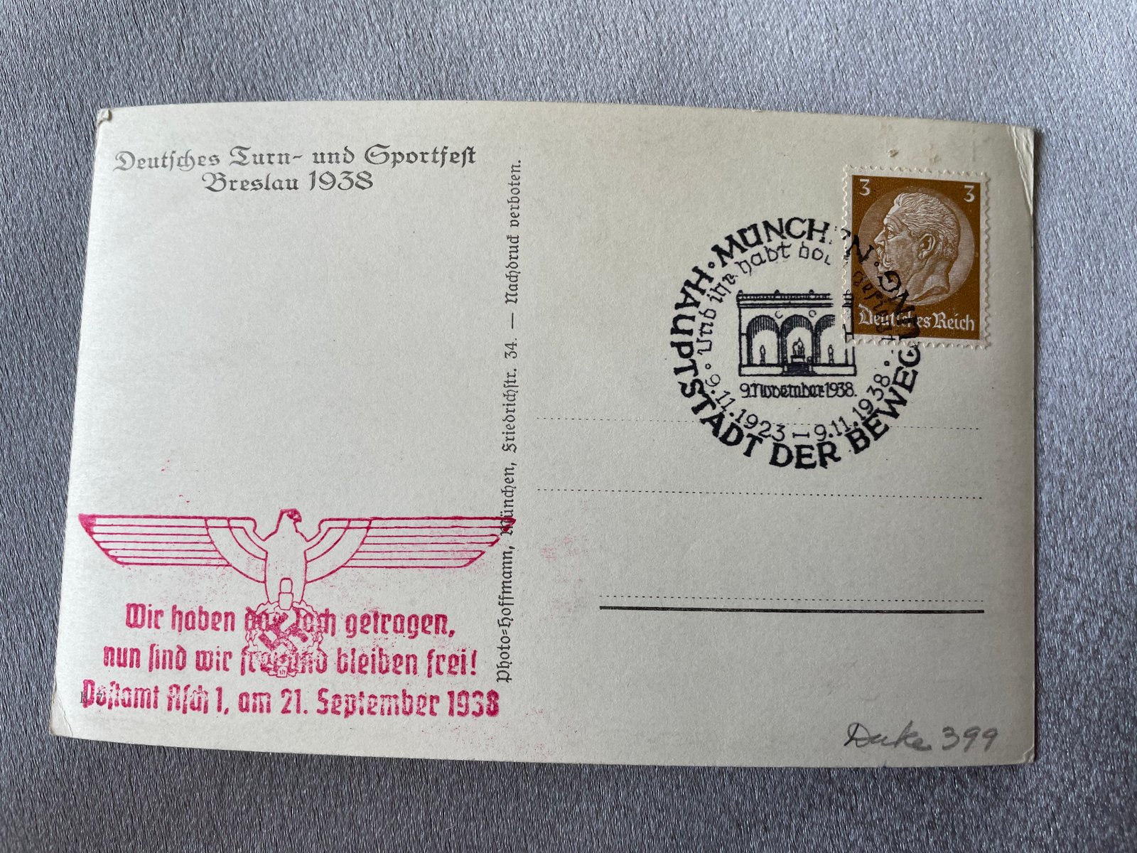 Adolf Hitler Postcard, Breslau 1938 Sportfest