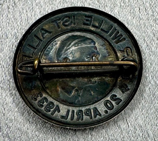"Der Wille Ist Alles 20. April 1933 Adolf Hitler Unser Fuhrer" Hitler Tinnie. Metal, 27mm