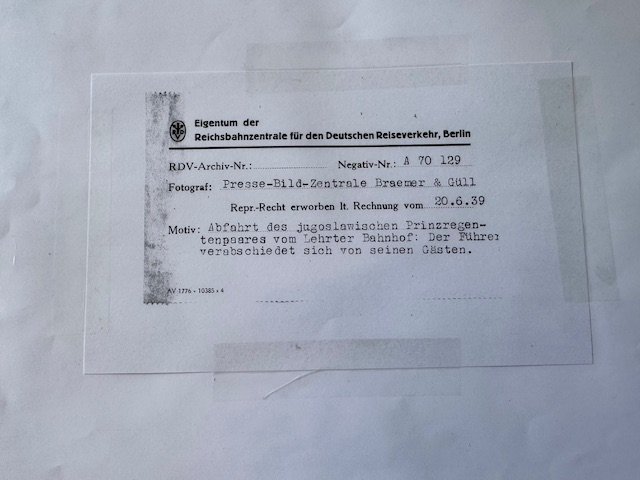 Adolf Hitler with Prince Regent Paul and Princess Olga, archive copy, 9" X 7"