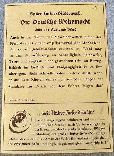 Andre Hofer Bilderwerk die Deutsche Wehrmacht, postcard size