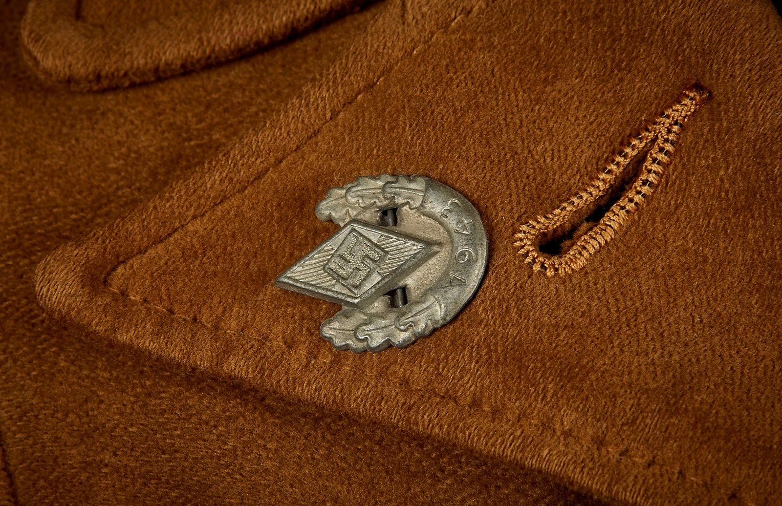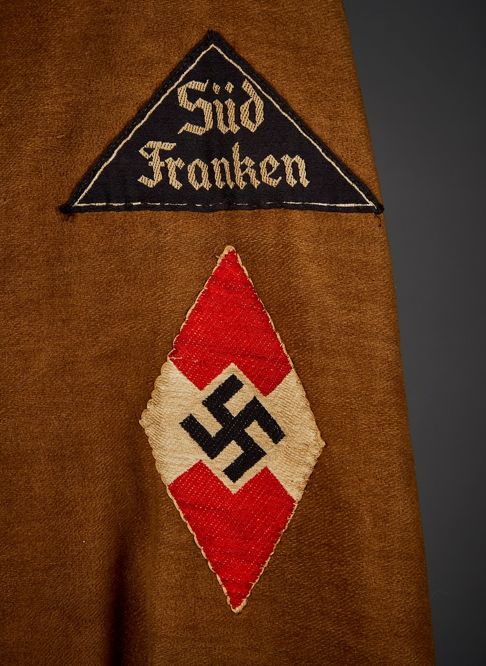 BDM Kletterjacke with district sleeve triangle for Süd Franken. Leather style buttons in original pre 1945 condition. Excellent condition, out of old collection. Previous owner participated in the 1943 Jugendfest as indicated by the 2 metal awards on the lapels.