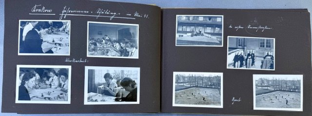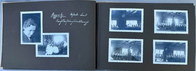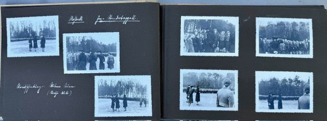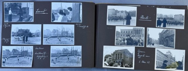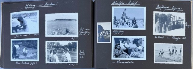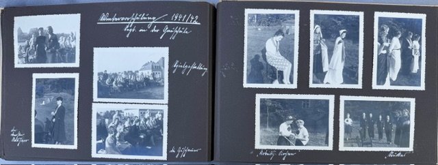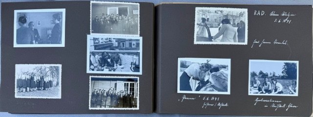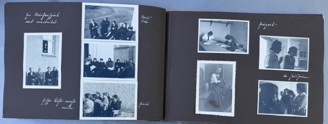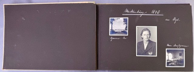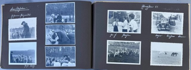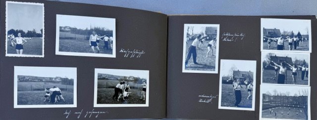 Mecklenburg BDM Leader's Photo Album for the years 1940 to 1942 showing the owner of the album teaching in classrooms, doing sports training, in the city, on vacation, one photo with Reich Health Leader Dr Leonardo Conti in his SS uniform. There are 144 pictures, with every page used (no pages or pictures missing), album is 12 1/2" X 8 1/2" in size. Nicest most complete BDM album I have seen, rare to find