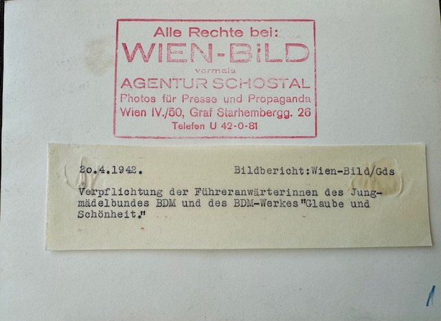 Commitment of the female leaders to the BDM Young Girls' League and the BDM organization "Faith and Beauty" on April 20, 1942, press photo, approx. 5" X 7" in size