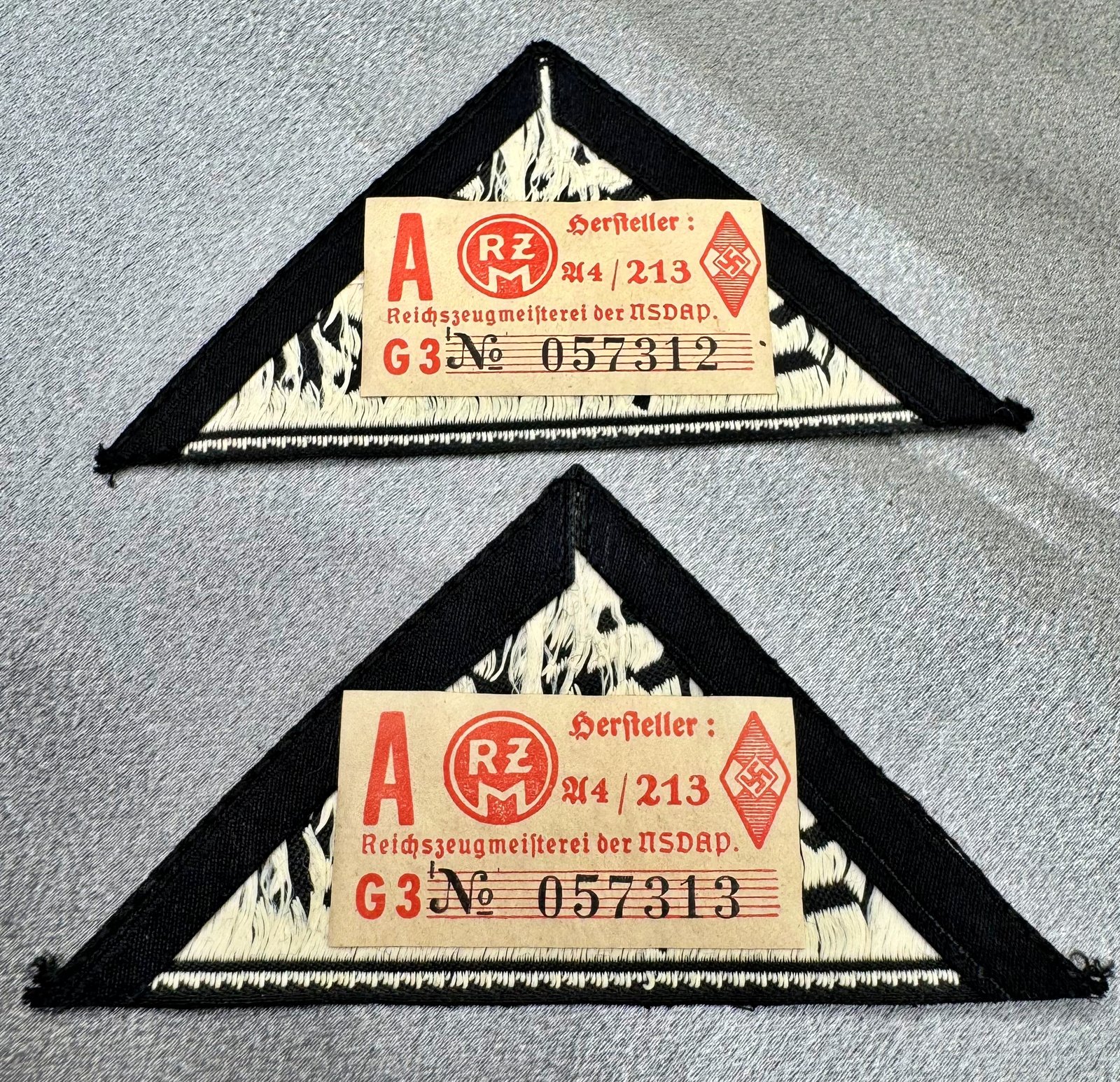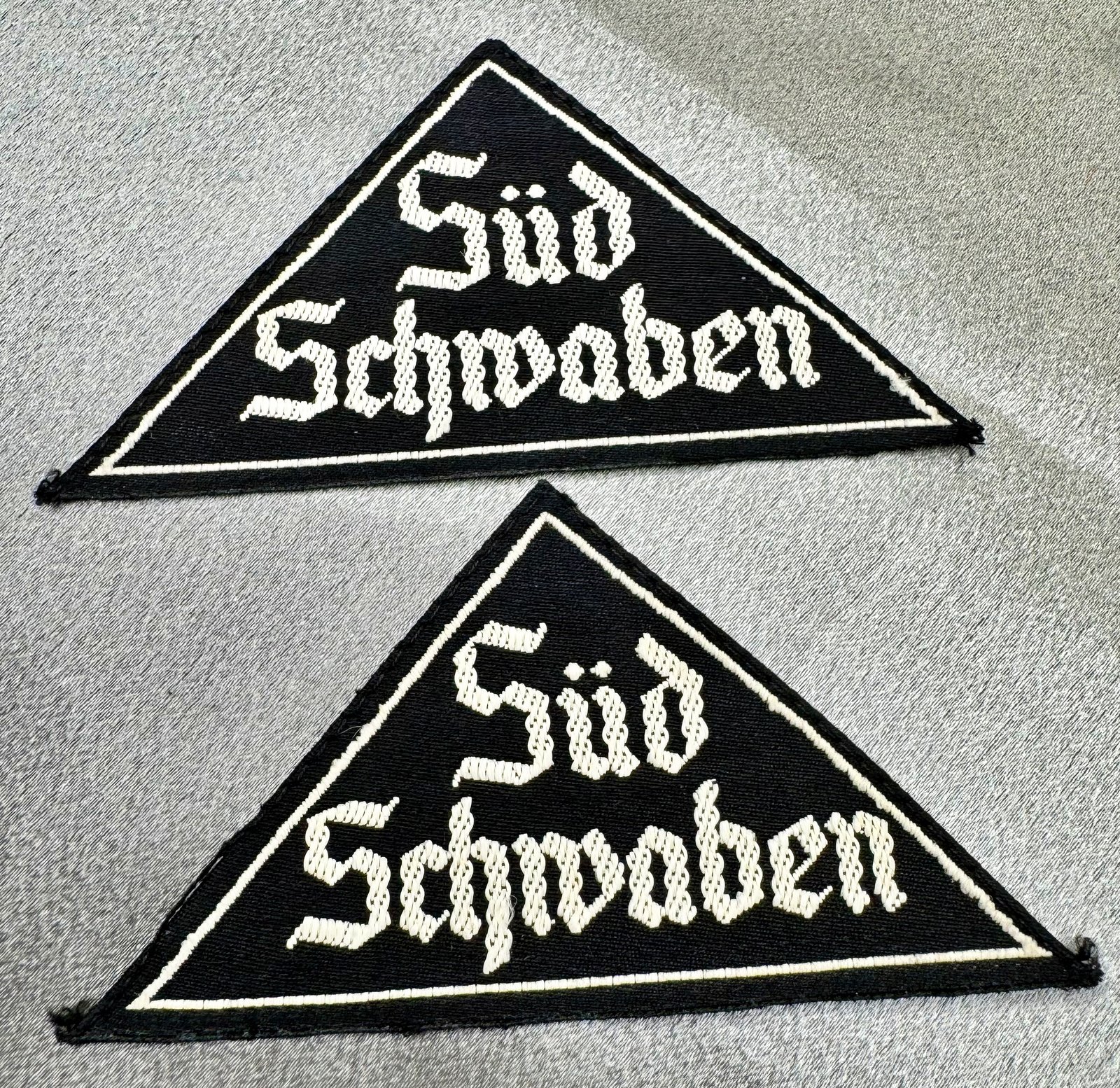 BDM Sleeve Insignia, Süd Schwaben, two consecutive RZM numbered examples