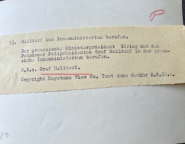 Berlin Police President Graf Helldorf, period press photo, 5" X 7"
