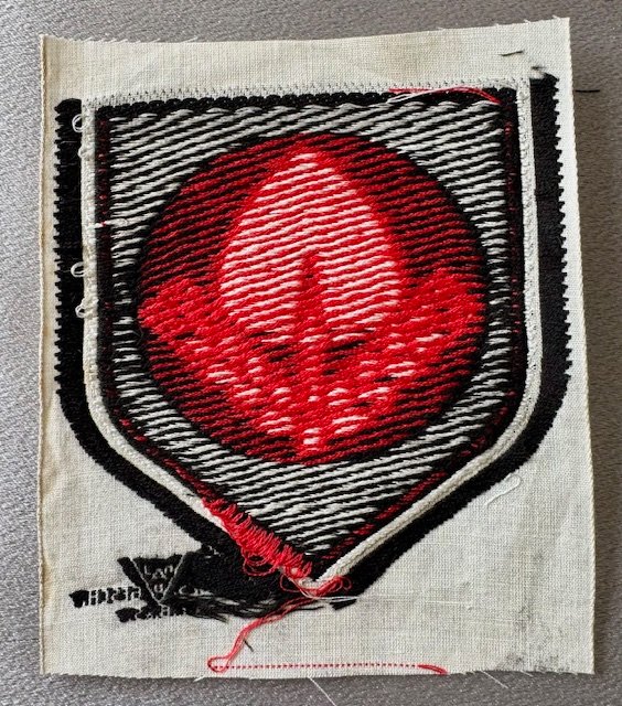 Bevo style RAD sports shirt insignia. Very nice condition. Overall approx. 4" X 4.5" in size.