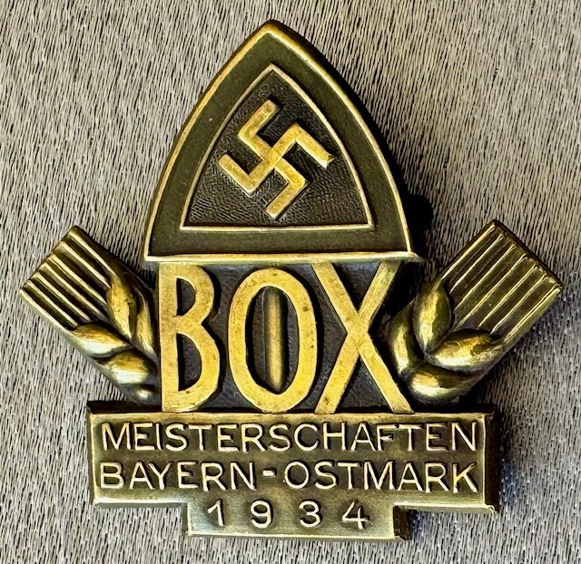 BOX Meisterschaften Bayern-Ostmark 1934 Tinnie, metal pinback, 34mm x 32mm
