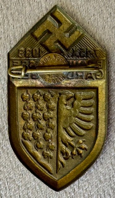 Braune Messe Gardelegen 7.- 15. X. 1933 Tinnie, metal pinback, 24mm x 46mm