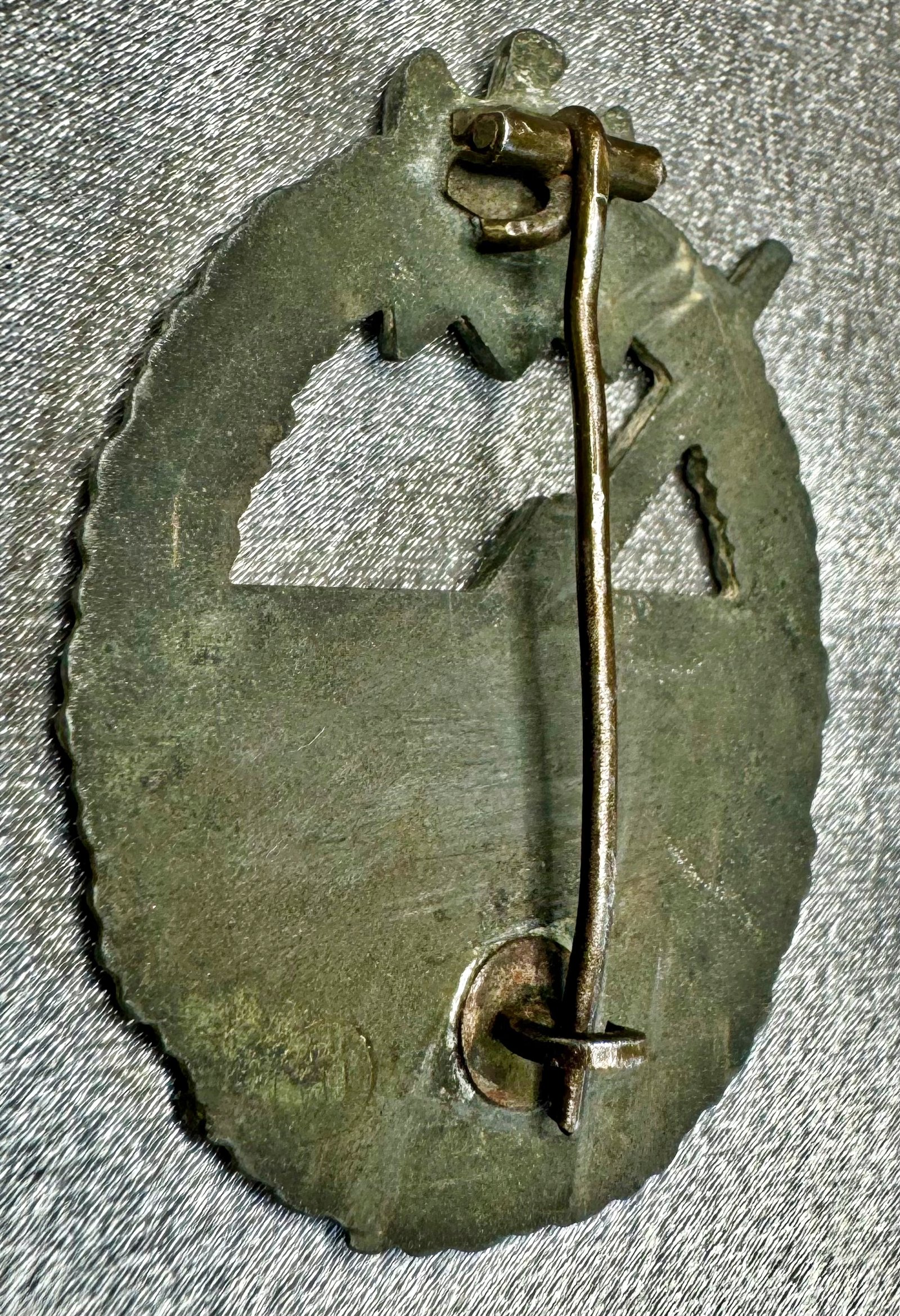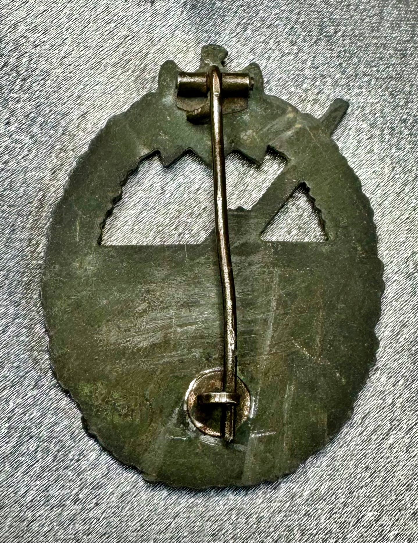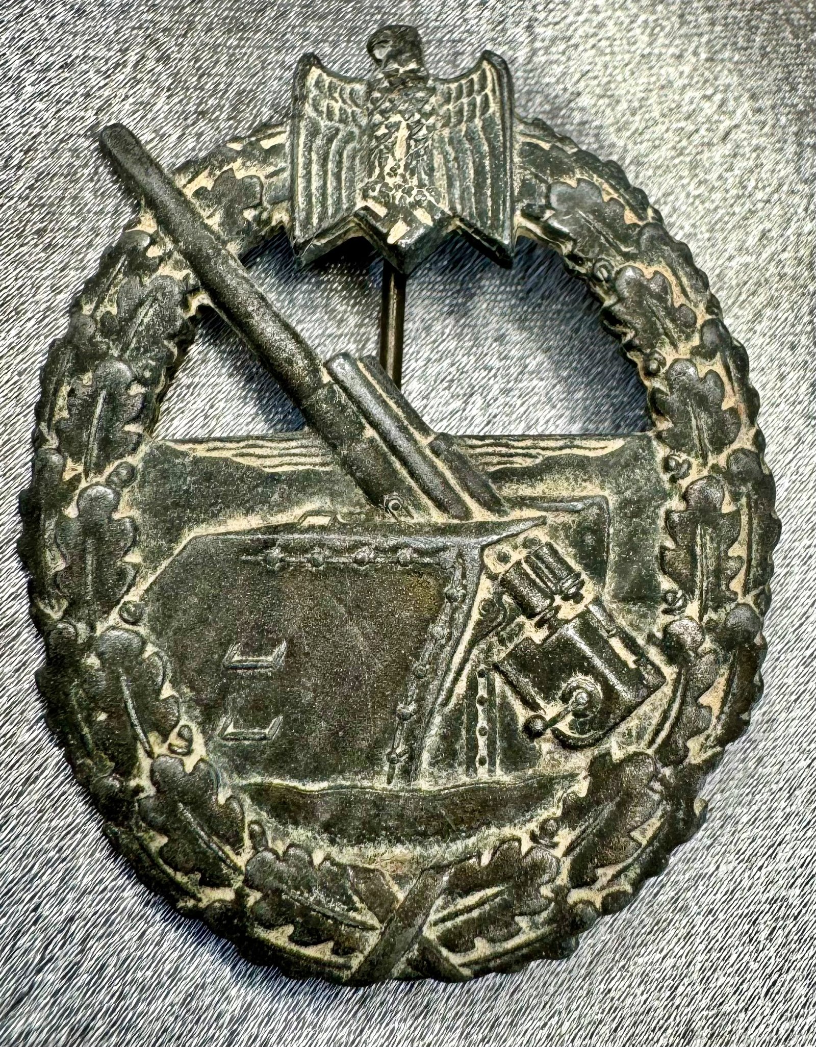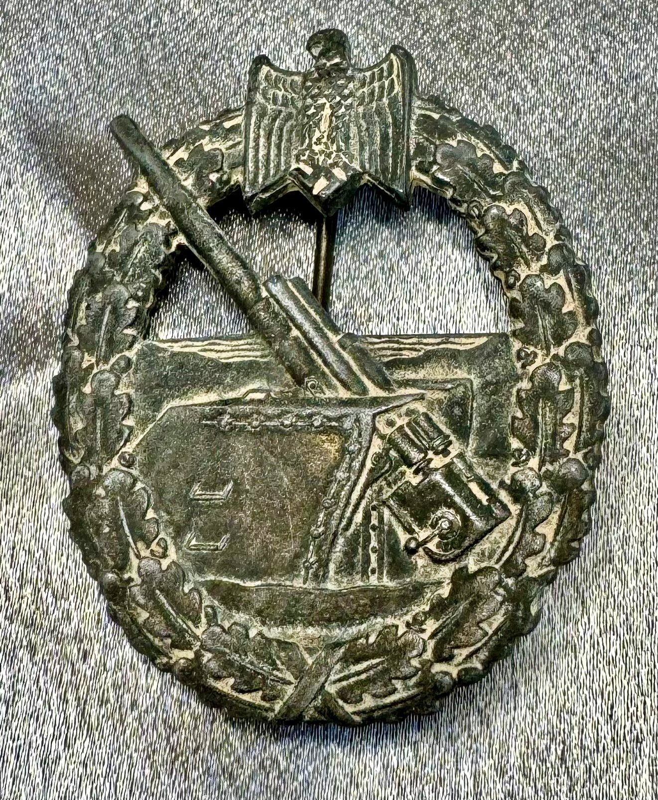 Coastal Artillery Badge. Faint maker mark for Weidmann "UU" to left side of catch.