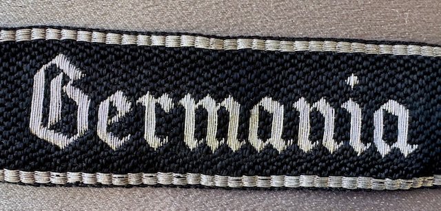 SS Germania Cuff title. Hand-stiched officer's example in almost mint condition, 48 cm long. Full size. Rare.