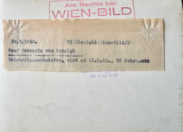 Customs High Leader Lutz Graf Schwerin von Krosigk, period press photo, 7" X 5"