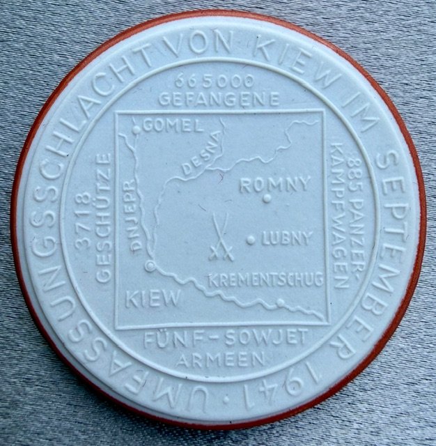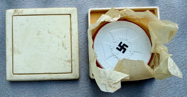 Das Deutsche Volk Dankt Seinen Tapferen Soldaten Medallion, cased. Meissen Porcelain with original tissue and box, 48mm