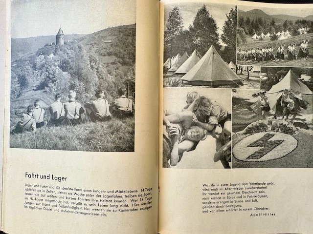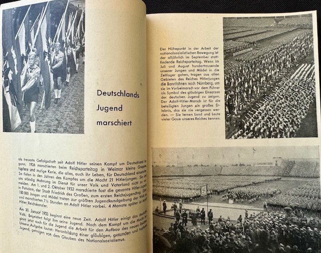 Das Ist Großdeutschlands Jugend, rare booklet with images on every page, showing DJ/HJ/BDM throughout Greater Germany circa 1938/1939. 50 pages, 6" X 8 1/2" in size. Excellent condition.