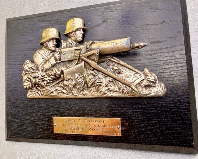 The 1st winner in the carbine and machine gun shooting for shooter Keiler in 1938, approx. 7" X 5 3/8" in size.
