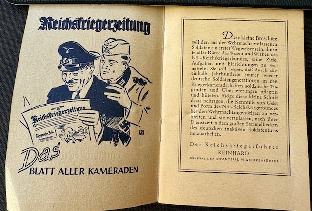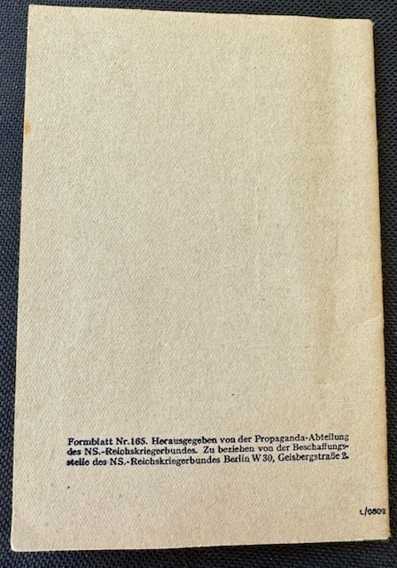 "Der NS Reichskriegerbund Was er ist und was er will", small booklet in excellent condition, printed in Berlin, (1938), 13,5 x 9 cm.