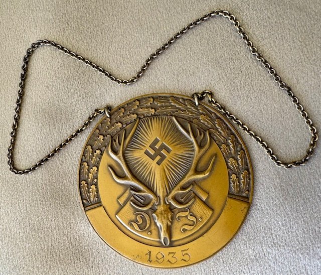 German Hunting Organization 1935 Award for collar, bronze with original chain, "GES GESCH" to reverse, 80mm