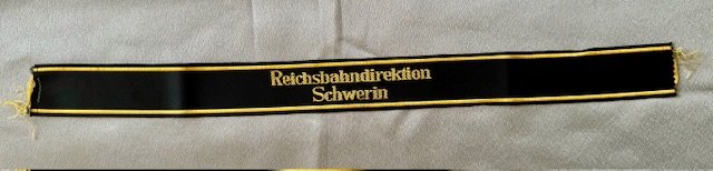 Deutsche Reichsbahndirektion Schwerin Cuff Title, 18" in length, excellent condition