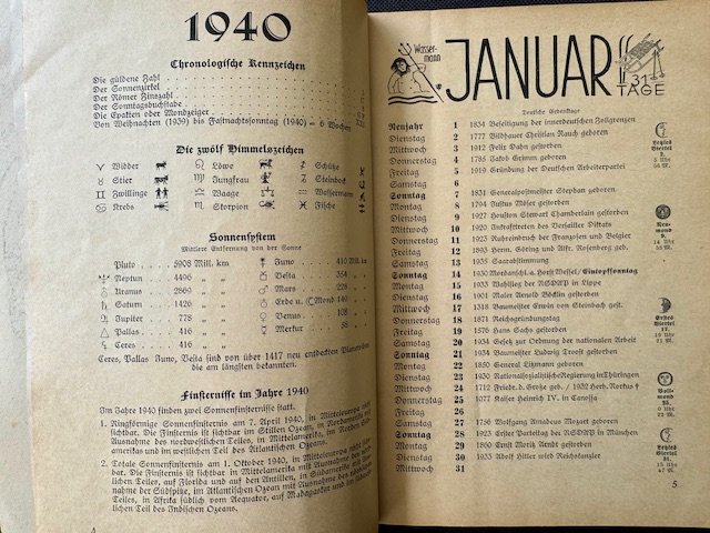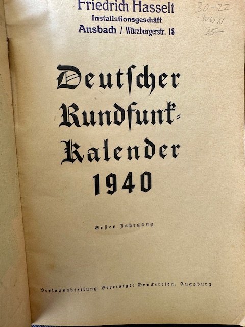 German Radio Calendar 1940. 95 pages of text and images, good condition