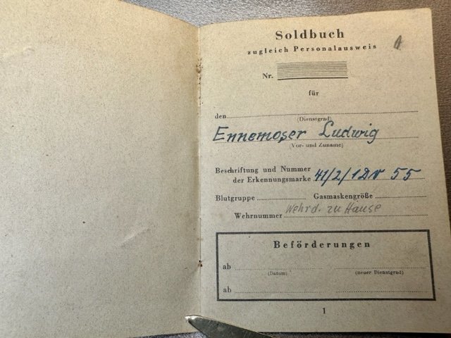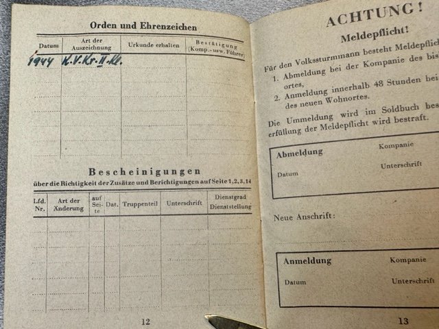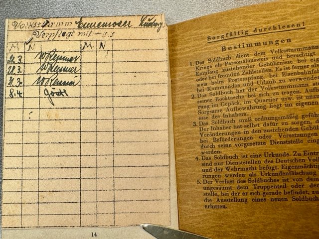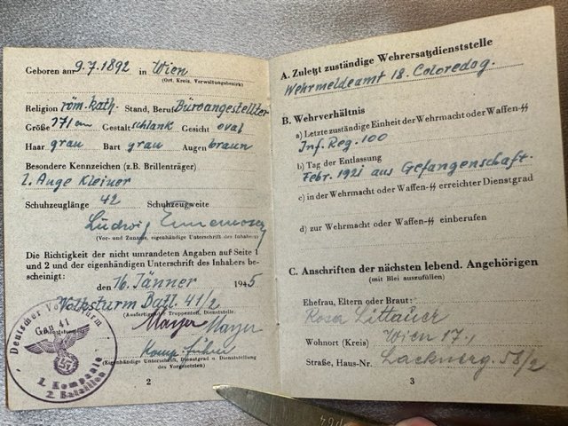 Deutscher Volkssturm Wehrmacht Soldbuch zugleich Personalausweis, KVK II awarded, nice condition