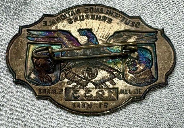 Deutschlands Nationale Erhebung 21. März 1933 Tinnie, rare early pinback