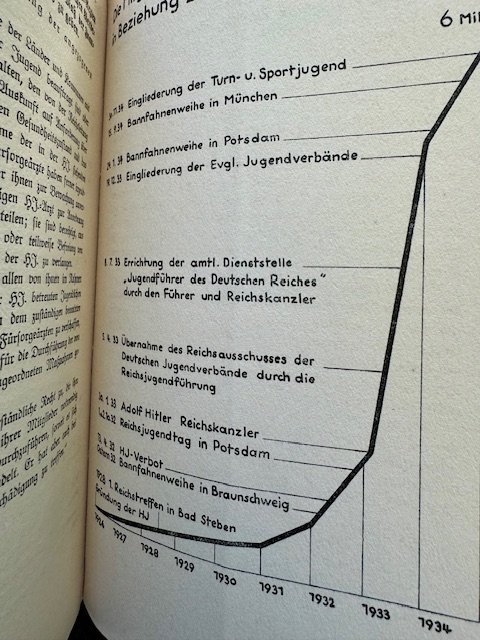 Die Hitler Jugend Idee und Gestalt (The Hitler Youth Idea and Form) by HJ Leader Baldur von Schirach. Text with several charts, homemade leather slip on cover.