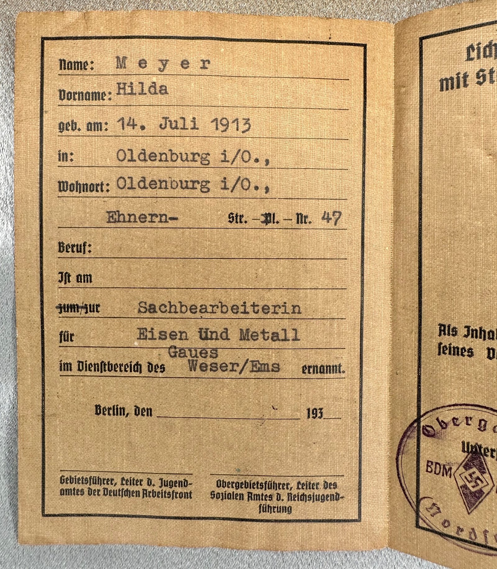 Dienst Ausweis für Gerufsreferenten und Sachbearbeiter