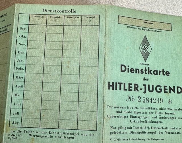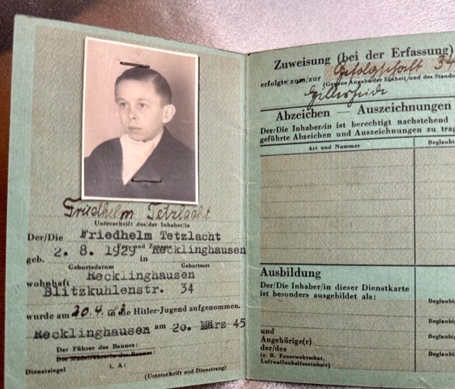 Dienstkarte der Hitler Jugend for Friedhelm Tetzlacht