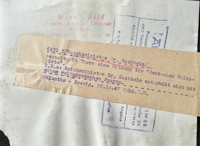 Dr Goebbels attended a meeting of the "Deutschen Volksliste" in Thorn. Press photo, approx. 7" X 5" in size.