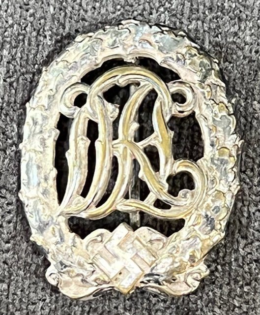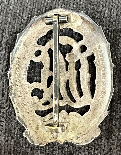 DRL Silver Sports Badge, 2nd pattern, marked "DRGM 35269 Wernstein Jena", excellent condition.