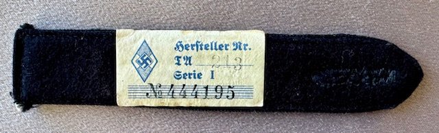 Early DJ Shoulder Board "B1/44". Rare shoulder board for a DJ member of the Jungbann "Westrich" from "Hessen-Nassau", which was created on September 15, 1934. The embroidery is the chain stitch style. This same should board is shown on page 429 in the Saris "Handbook of the Hitler-Jugend". RZM tag to reverse.