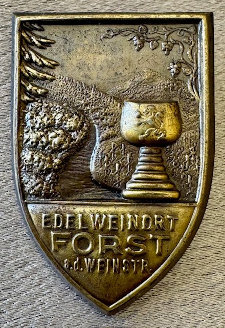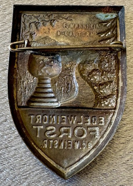 Edelweinort Forst a.d. Weinstr. Tinnie, metal pinback, 28mm x 42mm, uncommon