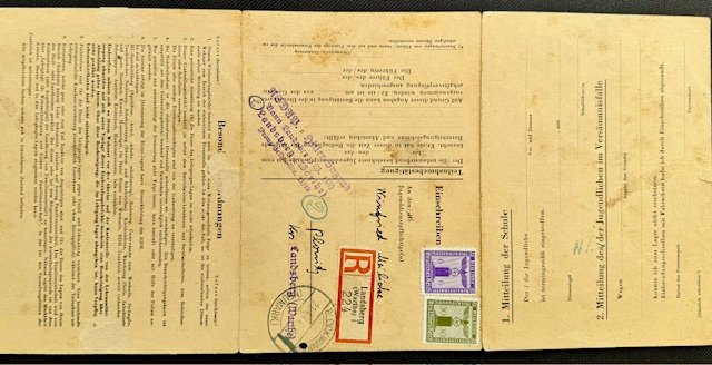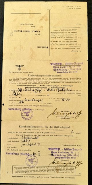 Registered mail for conscription notice for HJ member with railway ticket attached