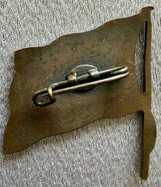 Enamel Swastika Flag Pin, early unmarked, approximately 25mm wide x 28mm tall, excellent condition