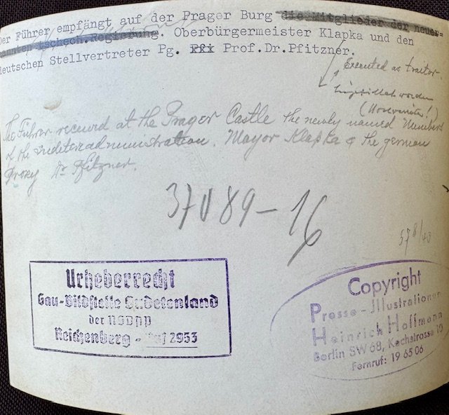 Führer at Prague Castle, period press photo, approx. 7" X 5"