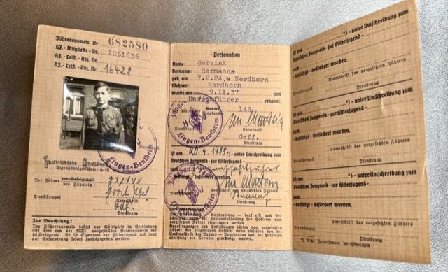 Führerausweis der Hitler-Jugend for HJ leader Hermann Gervink, nice condition